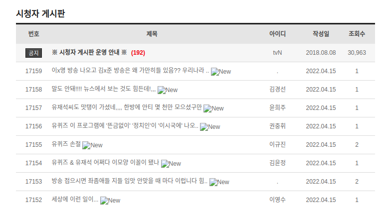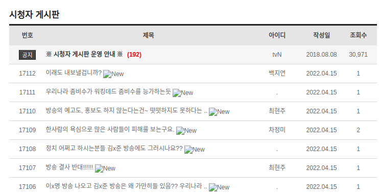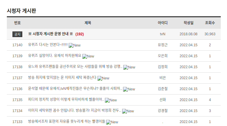 티빙의 유 퀴즈 온 더 블럭에는 유퀴즈 윤석열 출연을 반대하는 게시글들이 실시간으로 올라오고 있습니다. 시청자 게시판에 글을 쓰는 대부분 사람들은 유 퀴즈 온 더 블럭의 애청자들입니다. 윤석열 대통령 당선인에 관한 글이 벌써 6천개가 넘어가고 있습니다. 유퀴즈 방영이 시작한 2018년 이후로 가장 많은 게시글이 작성되고 있는 것입니다.