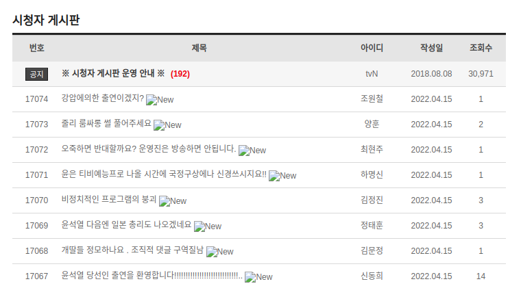 시청자 게시판을 보면 윤석열이 출연하면 유퀴즈 뿐만 아니라 tvN을 버리겠다. 정말 이건 아니고 실망입니다. 유퀴즈의 윤석열 이미지 세탁 방송을 반대합니다. 등 유퀴즈를 정치적인 용도로 사용하지 말아달라는 청원식의 글들이 계속 해서 올라오고 있는 상황입니다.