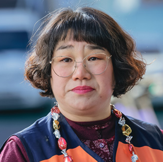 MS마트가 속한 나우동의 부녀회장을 역임하고 있습니다. 나우동의 관리를 도맡아 하면서 그녀의 핸드폰은 수시로 울리고 있습니다. 동네 사정을 속속 알고 있는 그녀는 재개발 반대조합을 함께 운영하고 있습니다. 최근 나우동 재개발 이슈가 수면위로 떠오르면서 재개발 찬성파와 대립각을 세우고 있습니다.