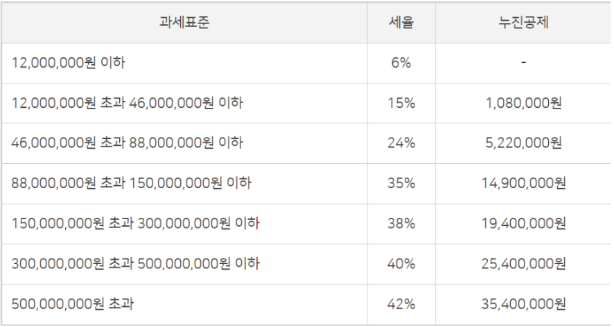 만약 직장인 분들이라면 근로소득 외 추가 소득이 있는 경우 분리과세(소득별을 분리해서 따로 과세하는 방법)과 합산과세(모든 소득을 한번에 몰아서 과세 처리) 중 본인에게 유리한 방법을 선택해야 합니다. 종합소득체 최고 세율은 5억원이 넘어갈 때 42%의 세금이 추가 되기 때문에 본인에 맞는 방법을 잘 선택해야 하는 이유입니다.