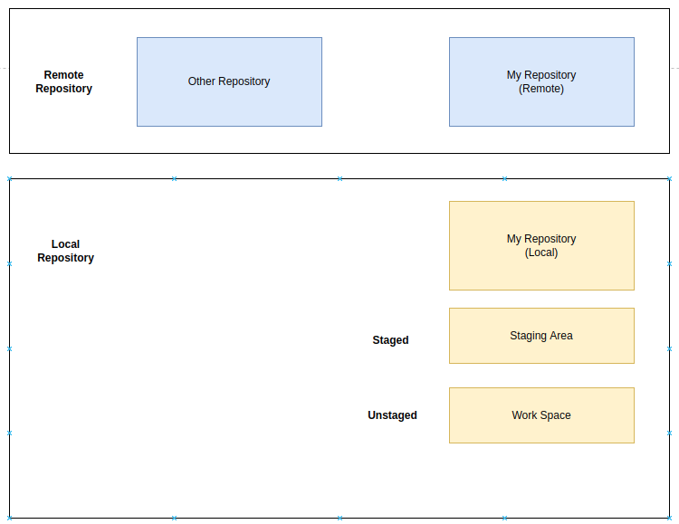전체적인 Git의 구조를 보면 크게 Local과 Remote로 구분이 되고, Local 내에서도 Unstaged와 Staged로 구분이 됩니다. 만약 git add와 git commit을 완료하게 되면 Local My Repository로 소스코드가 저장이 되며, 만약 되돌리기 위해서는 git restore 명령어를 통해 다시 work space로 가져올 수가 있습니다(commit 취소).