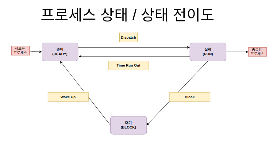 ③ Block : 실행 상태의 프로세스가 입출력에 의해 작업을 위해 대기 상태로 변하는 과정