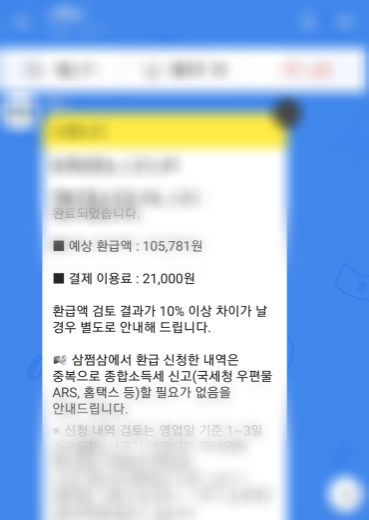 환급 신청을 완료하면 카카오톡으로 완료 내역 정보를 전송해줍니다. 저는 2017년 10만 5천원 정도 환급액이 발생했습니다.