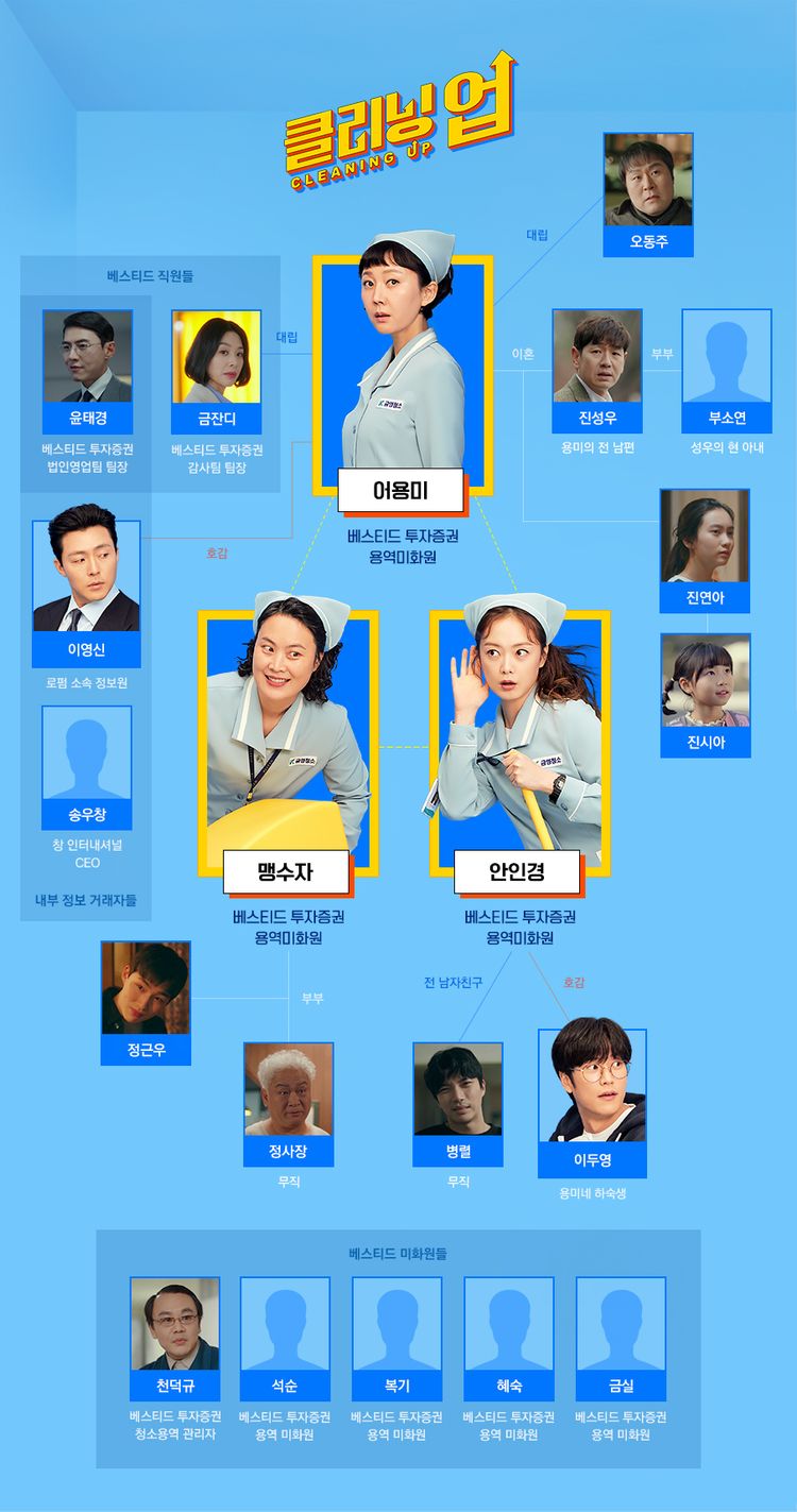 청소(Cleaning Up)하던 그녀들이 내부자 정보를 알게 되면서 주식 범죄에 뛰어들어 거액의 돈(Cleaning Up)을 쓸어담는 주식 범죄 스릴러 드라마입니다. 내부자 거래는 엄연한 불법입니다. 드라마는 그냥 드라마로 보는게 맞고, 실제로 내부자 거래를 하기 위해 여의도에 청소부로 취직하려는 사람은 없겠죠?