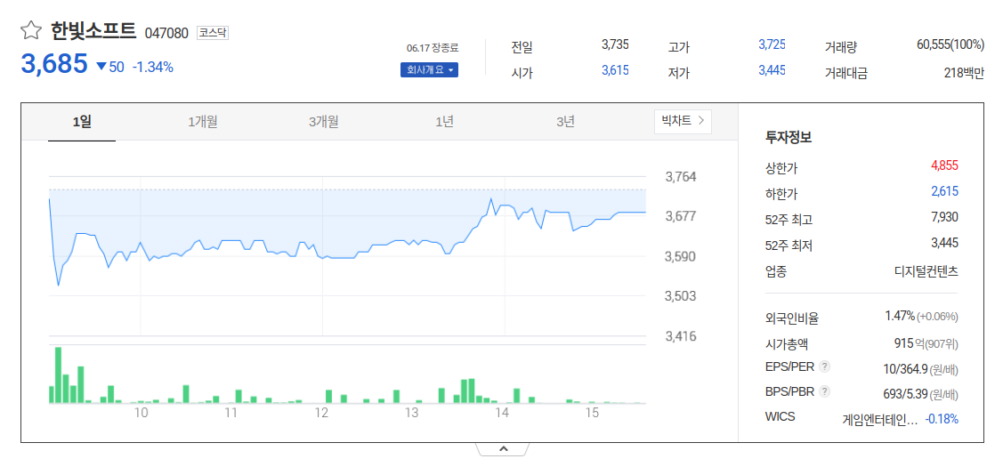 한빛소프트는 자체적인 IP(지적재산권)을 가지고 MMORPG, 전략 시뮬레이션 게임을 제작 및 운영하는 기업입니다. 모바일 게임과 VR 게임으로도 영역을 확장하고 있습니다. 최근 삼성전자와 콜라보를 통해 VR 스포츠 교실등 VR과 AR을 활용한 콘텐츠로도 개발을 진행중에 있습니다.