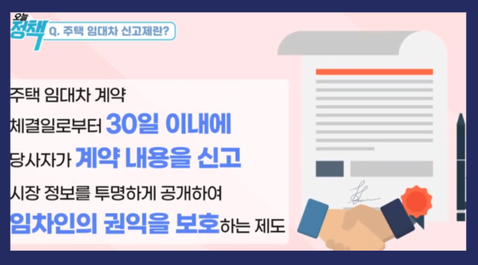 ③ 전월세 신고제 : 임대차 계약의 당사자(임차인 + 임대인)은 임대기간, 임대료 등을 담은 계약내용을 신고해야 됩니다.