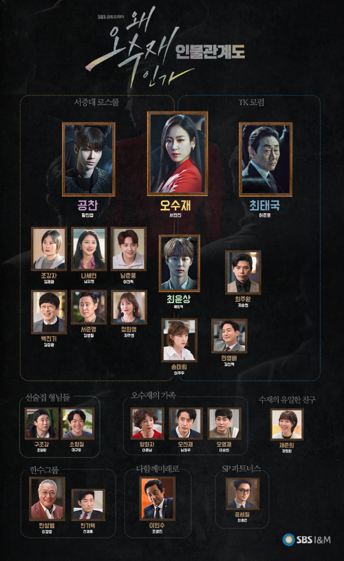 오수재는 10년 전 공찬 사건에서 만났고, TK 로펌에서 키웠지만, 아들 최주완의 비행을 감추고, 한성범, 이인수 의원의 아들들의 범죄를 덮어주면서 자신도 범죄를 저지르게 됩니다. 항상 치열하게 살았다고 하지만 불법을 밥먹듯이 저지르는 최종 빌런.