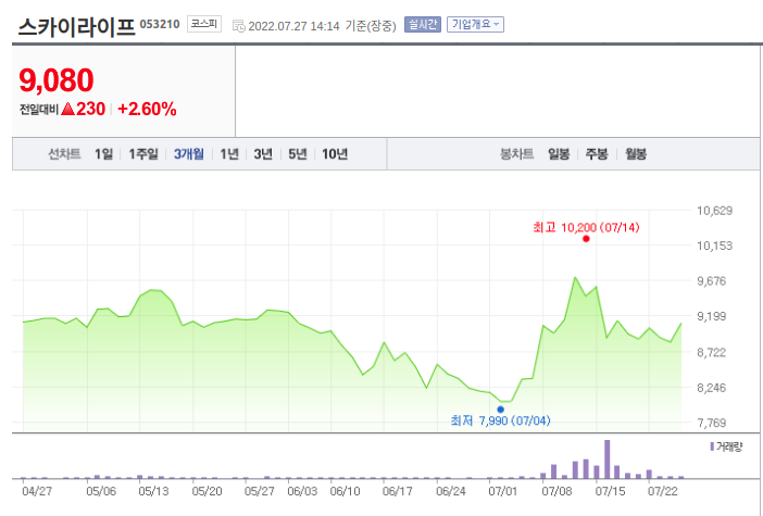 마지막으로 안내드릴 종목은 스카이라이프 입니다. ENA 채널을 운영하고 있는 KT 위성방송의 자회사로 역시 이상한 변호사 우영우가 방여되고 나서 주식이 2배 가까이 상승한 상황입니다. 시청자가 증가하면할 수록 광고수입이 증가할 것으로 전망됩니다.
