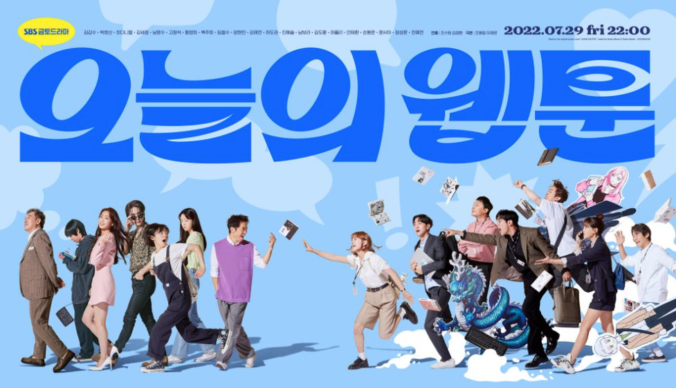2022년 7월 29일 방영을 시작한 <오늘의 웹툰> 드라마는 <왜 오수재인가> 후속작으로 SBS에서 방영을 시작했습니다. 웹툰 작가들이 오피스에서 오늘의 웹툰을 발행하기 위해 고군분투하는 이야기를 담고 있는 만큼 새로운 환경에 대한 그림을 그려내고 있습니다.