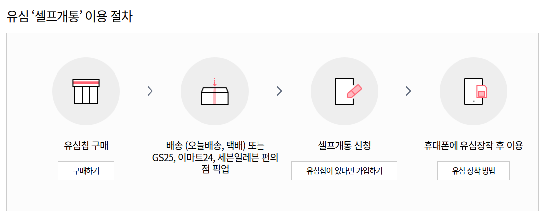 1. 먼저 유심을 구매해야 합니다. 온라인에서 택배로 받아볼 수도 있고, 편의점에서 직접 살 수도 있습니다.