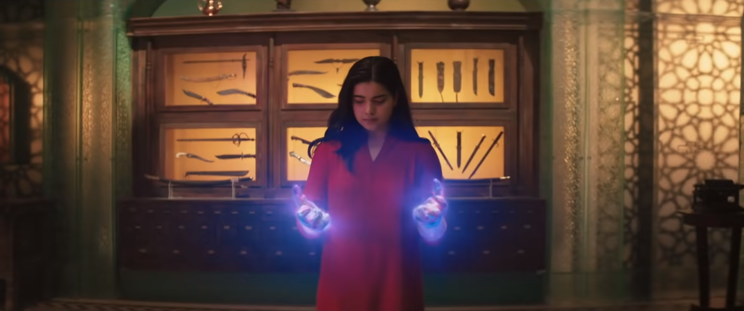 미즈 마블은 팔찌를 차고 나서 손이 늘어나는 능력을 가지게 됩니다. 원작인 마블 코믹스에서의 미즈 마블의 능력은 원피스의 루피처럼 몸이 늘어나는 능력이지만 드라마에서는 조금 각색이 들어갔습니다. 미즈 마블의 능력을 사용하면 원격으로 사물을 조작하거나, 공중에서 걸을 수 있게 됩니다.