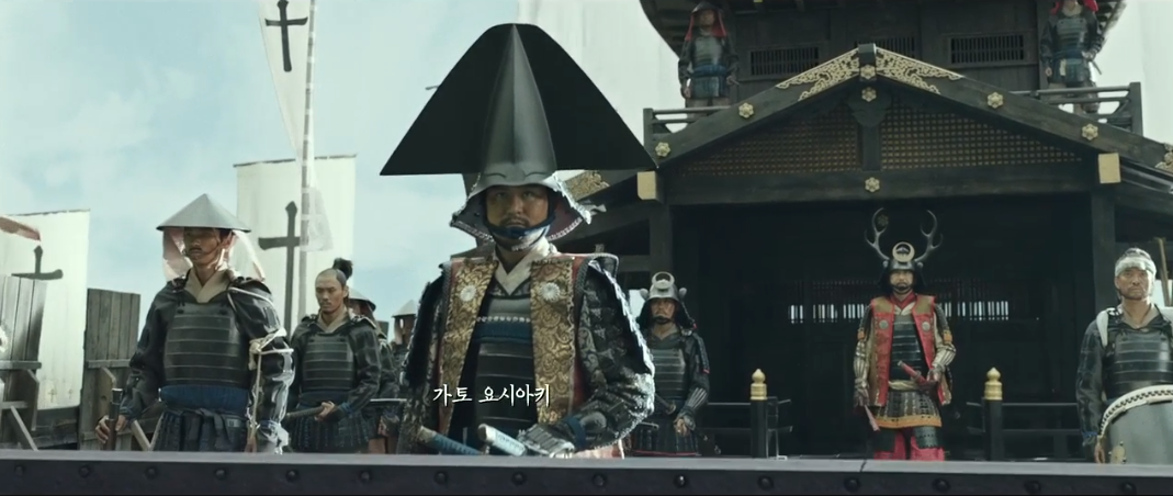왜군들은 월선을 하여 전쟁에 승리해왔습니다. 이순신은 이를 이용해 학익진을 펼쳐 바다위의 성을 만듭니다. 왜군들이 달려오자 배를 돌려 크레모아를 쏴버리고 전쟁에 승리합니다. 이 때 부터 와키자카 야스하루와 그 부대들은 이순신을 신으로 떠받들게 됩니다.