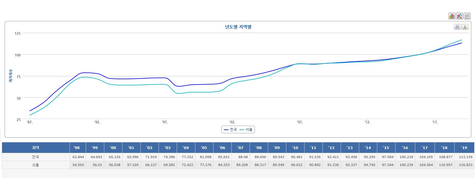 1980년 IMF 구조조정이 찾아오기 전 서울의 지가 대비 현재는 3배 이상 가격이 상승하였다. 이유는 한국의 경제성장률이 첫 번째이고, 두 번째는 지속적으로 시중에 풀리는 는 현금으로 인해 인플레이션이 발생한 것이다. 가격의 상승은 바보가 아닌 이상 누구나 알 수 있는 단순한 원리이다. 당시 주택을 구입한 사람이면 이사를 하거나 특수한 일이 발생하지 않는 이상 계속해서 거주하면서 삶의 터전을 꾸렸을 것이고, 그 주택이 현재 3배 이상의 수익을 안겨준 것이다.