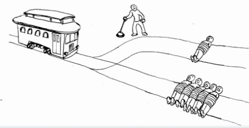 트롤리 뜻은 윤리학에서 사용되는 트롤리 딜레마에서 따온 제목입니다. 트롤리 딜레마란 만약 브레이크가 고장난 전동차를 멈출 수 없는 상황에서 5명이 있는 곳과 1명이 있는 곳 어디를 선택할지 묻는 딜레마입니다. 어떤 선택을 해도 사람은 죽지만 어떤 선택을 해야 할지 알 수 없습니다.