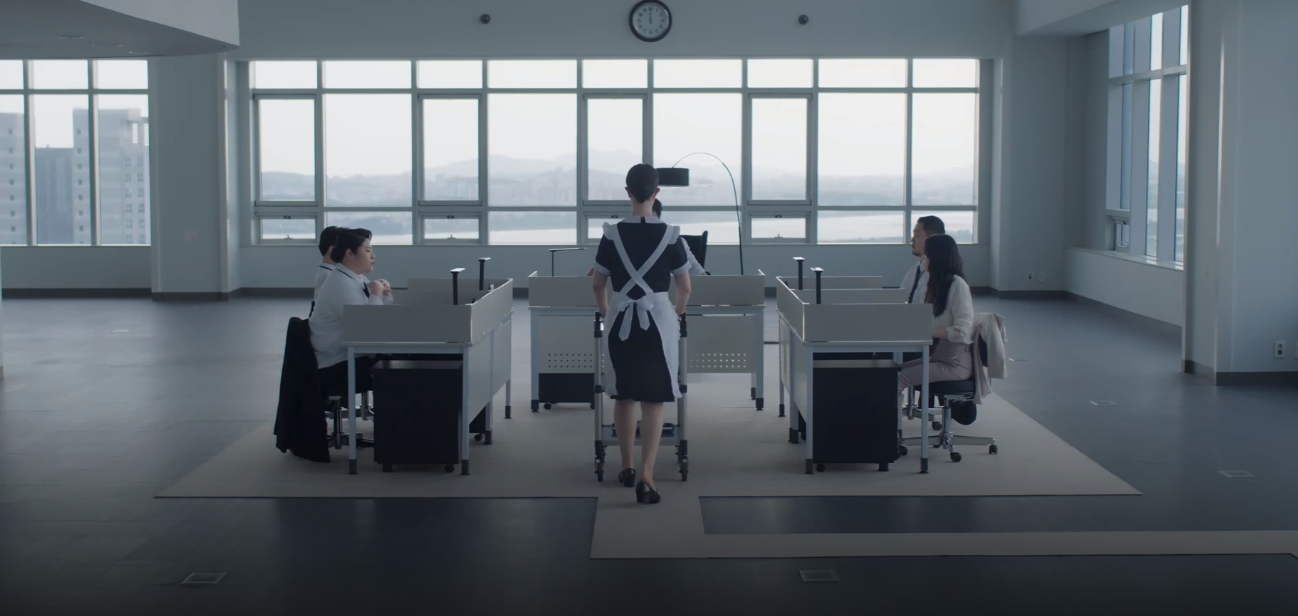 근데 회사가 조금 이상합니다. 공간되 굉장히 넓은데 굳이 엘레베이터도 타지 않고 정해져있는 길로만 다녀야 합니다. 밥도 자리까지 가져다 주는 직원이 따로 있습니다.