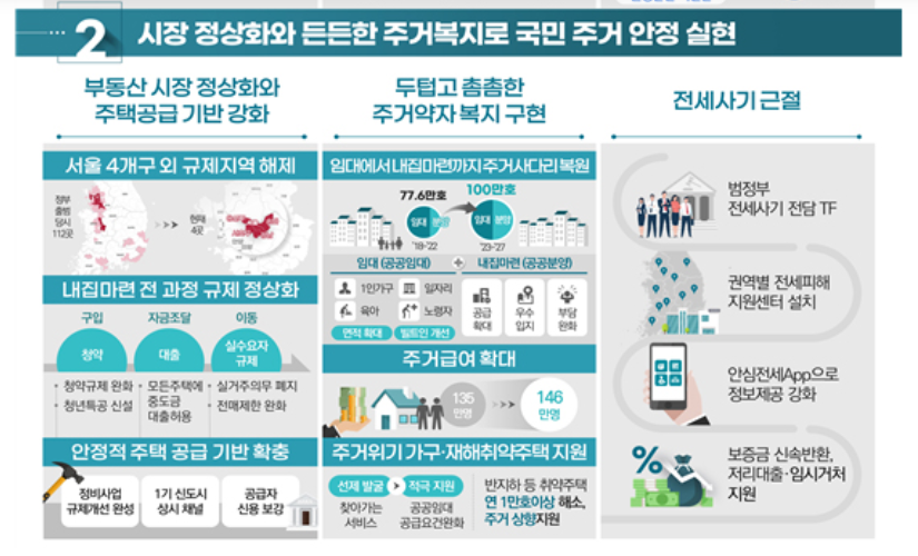 - 청약 당첨자 실거주와 기존 주택 처분 조건 의무화 폐지(2년으로 완화 했다가 완전 폐지)
