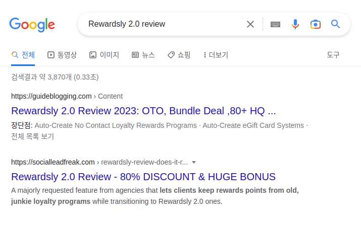 상품명을 기준으로 구글 검색을 진행합니다. review를 써놓은 분들이 많습니다. 여기서 기사를 확인하고 내용을 가져옵니다.